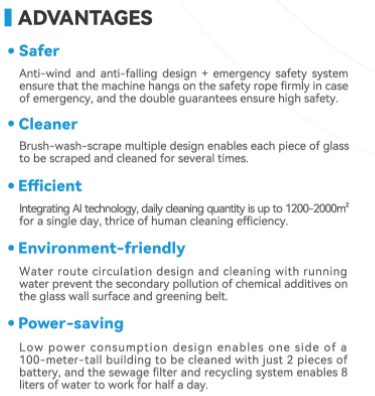 It has revolutionized the traditional cleaning method in the industry, enabling zero occurrence of high-altitude operation accidents, and its cleaning efficiency is thrice that of human labor.